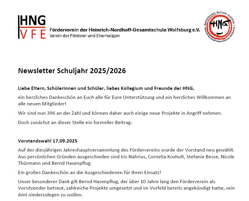 Liebe Eltern, Schülerinnen und Schüler, liebes Kollegium und Freunde der HNG,